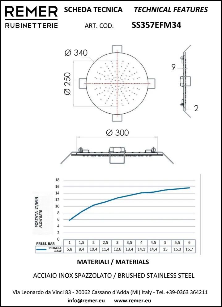 Верхний душ Remer потолочный Ø 34см нержавеющая сталь SS357EFM34