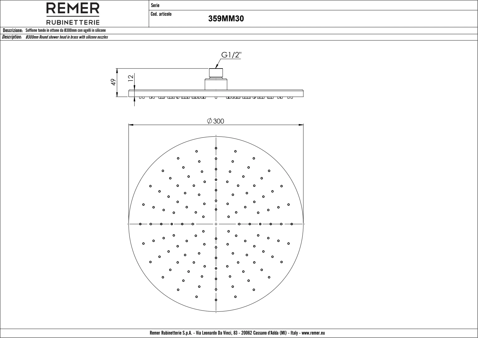 Верхний душ Remer с шарнирным соединением Ø 30см 359MM30NO черный матовй 359MM30NOX
