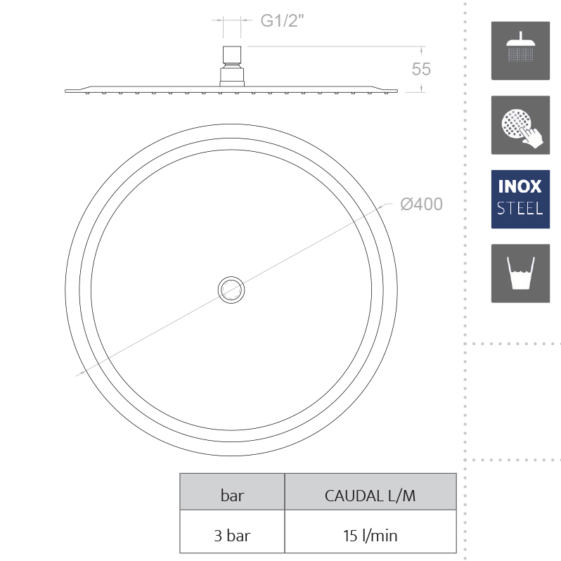 Эта круглая лейка из нержавеющей стали станет великолепным дополнением к вашему интерьеру. Благодаря подключению G1/2" и материалам высочайшего качества, таким как хромированная латунь с никелем толщиной 15 мкм и хромом в 0,3 мкм, она обеспечивает надёжность и долговечность. Работая в диапазоне давления от 1 до 5 бар, она оптимально функционирует при 3 барах, обеспечивая комфортный и расслабляющий душ каждый раз.