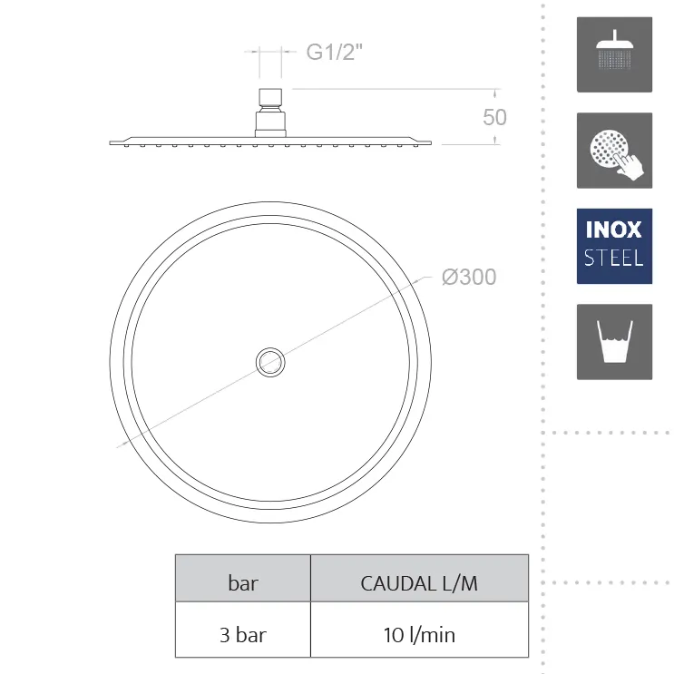 Лейка подходит для подключения G1/2" и обеспечивает оптимальное давление воды от 1 до 5 бар, с рекомендуемым рабочим давлением в 3 бара. Особое внимание уделено надежности: продукт соответствует строгим требованиям европейских стандартов EN 1112 и EN-248. Это гарантирует превосходное качество герметичности, струйной дисперсии и устойчивости к механическим нагрузкам.