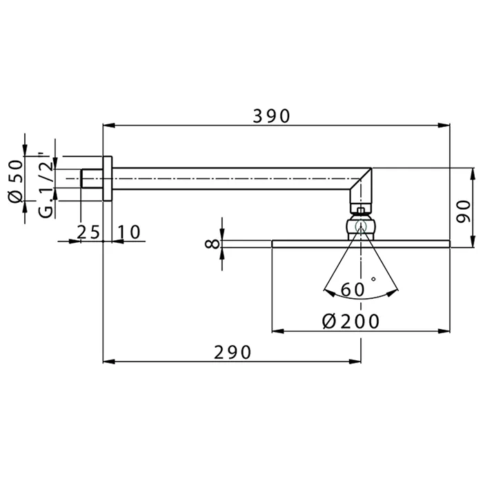 Верхний душ Cisal Shower D200 мм с настенным держателем L290 мм, хром DS01319021