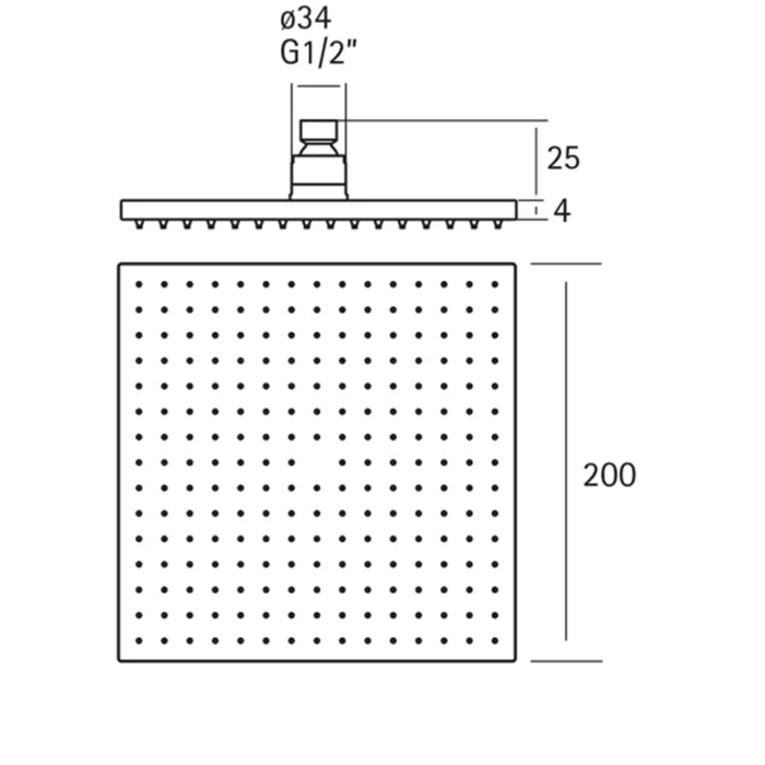 Верхний душ Cisal Xion 200х200 мм., нержавеющая сталь DS016440D1