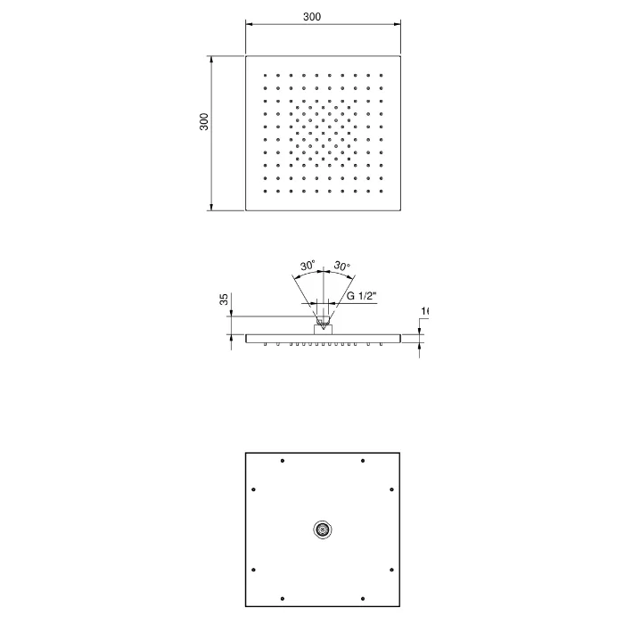 Верхний душ Fantini 300х300, Matt British Gold PVD 79 P6 K053