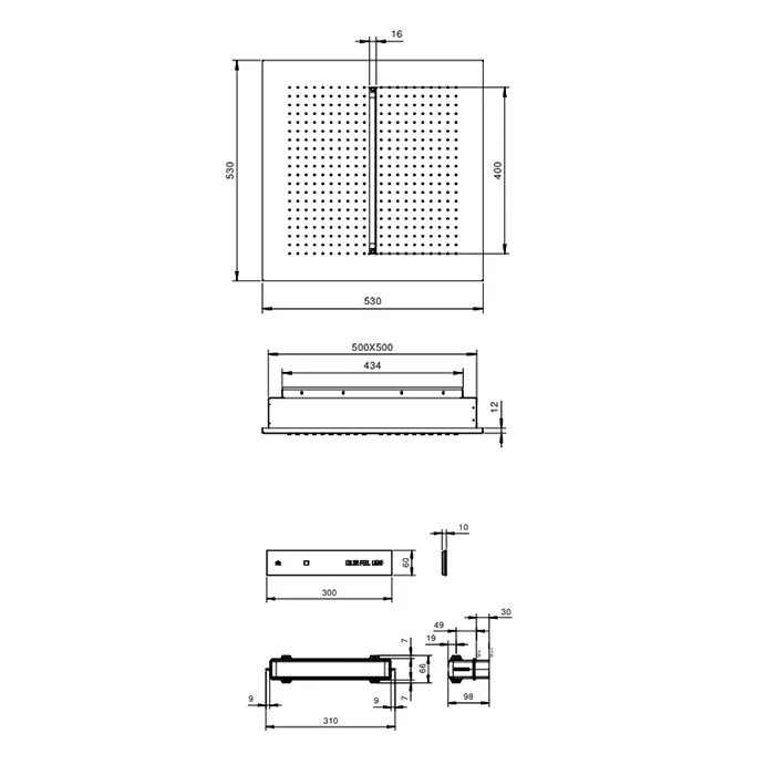 Верхний душ Fantini Acqua Zone Dream 530х530, потолочный, хромотерапия 4 цв.,Дождь, Ливень, Блестящая натуральная сталь 75 38 C031