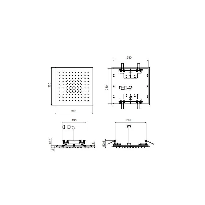 Верхний душ Fantini Acquafit 300х300, встраиваемый в потолок, Matt British Gold PVD 79 P6 K052