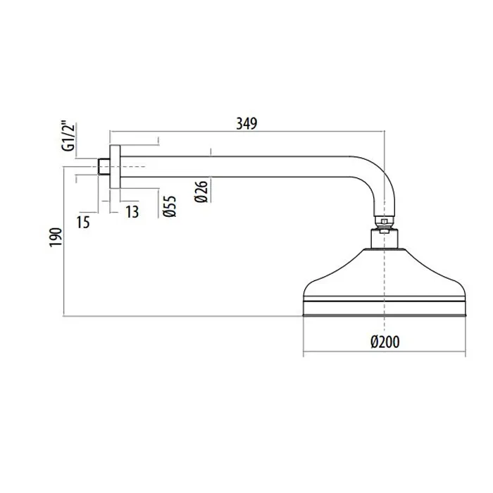 Верхний душ Gattoni Pd 200 с держателем из стены 349 до центра, хром SFPCL20C0