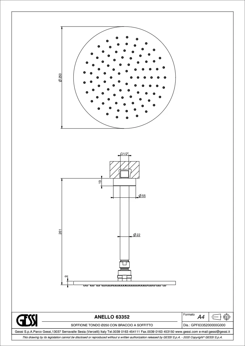 Верхний душ Gessi Anello 63352.030 Copper PVD