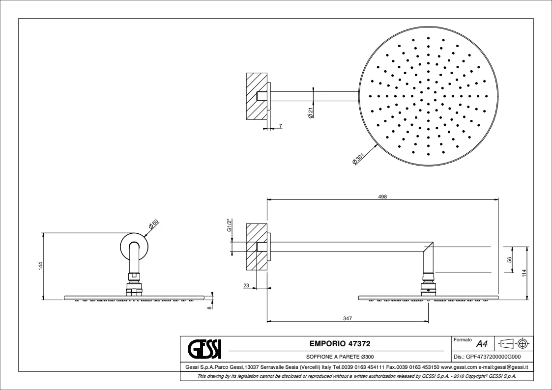 Верхний душ Gessi Emporio Emporio shower 47372.149 Finox Brushed Nickel