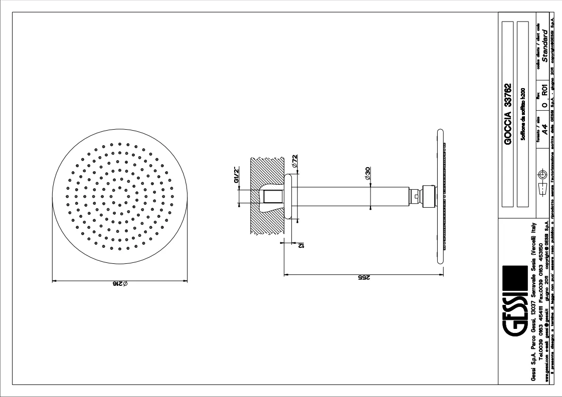 Верхний душ Gessi Goccia 33762.031 Chrome