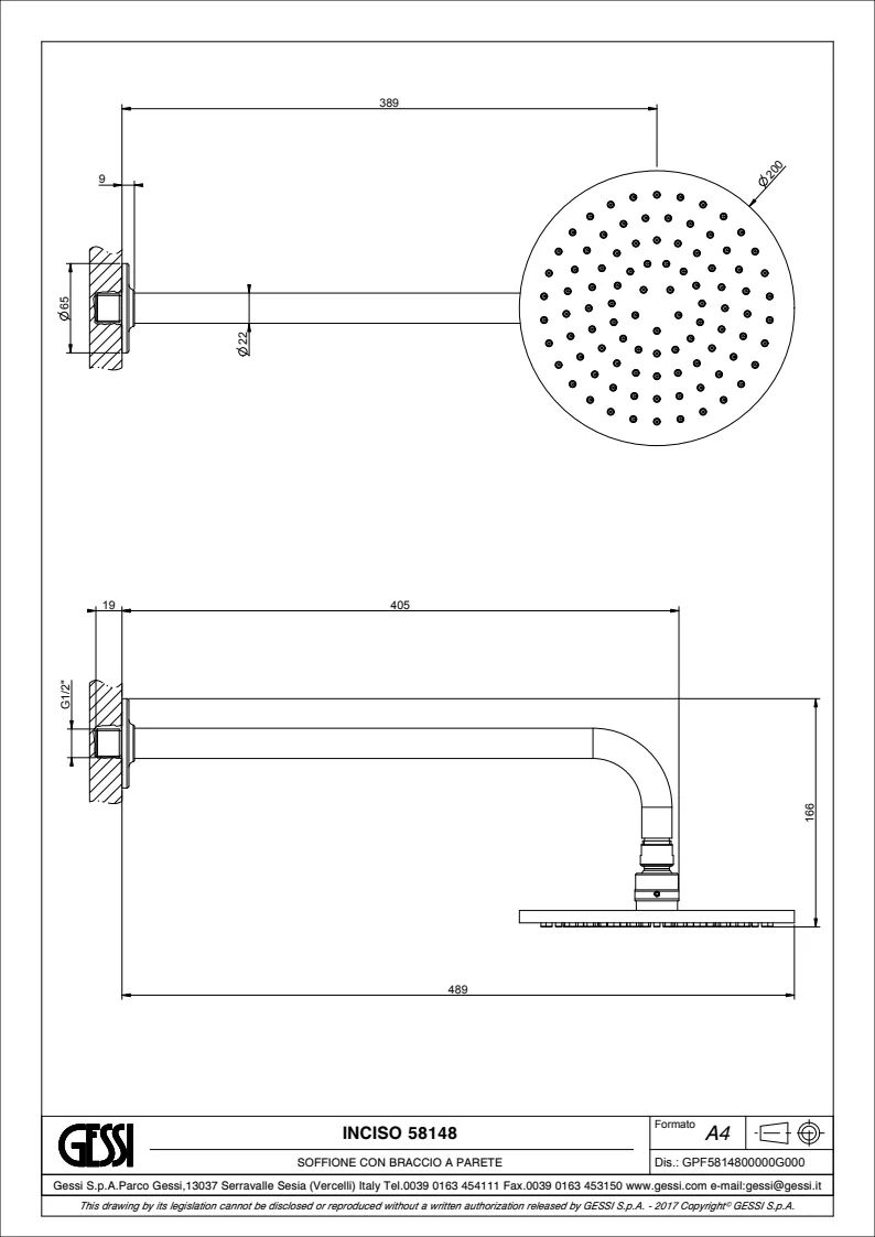Верхний душ Gessi Inciso 58148.030 Copper PVD