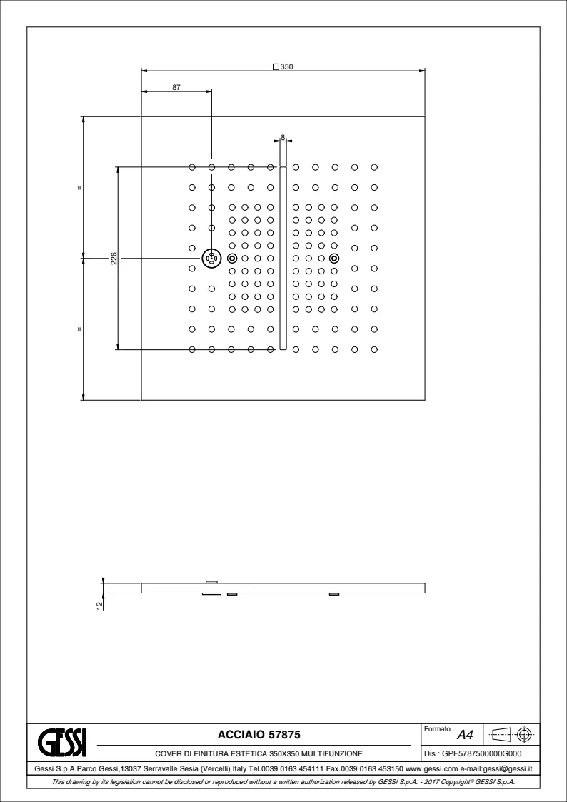 Верхний душ Gessi Minimali 57875.727 Brass Brushed PVD