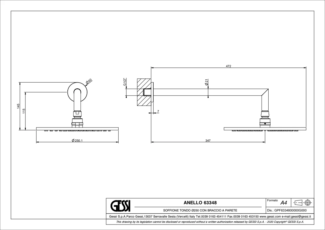 Верхний душ Gessi Shower Sets 63348.708 Copper Brushed PVD