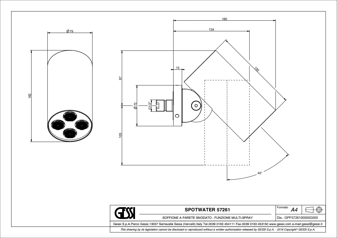 Верхний душ Gessi Spotwater 57261.031 Chrome