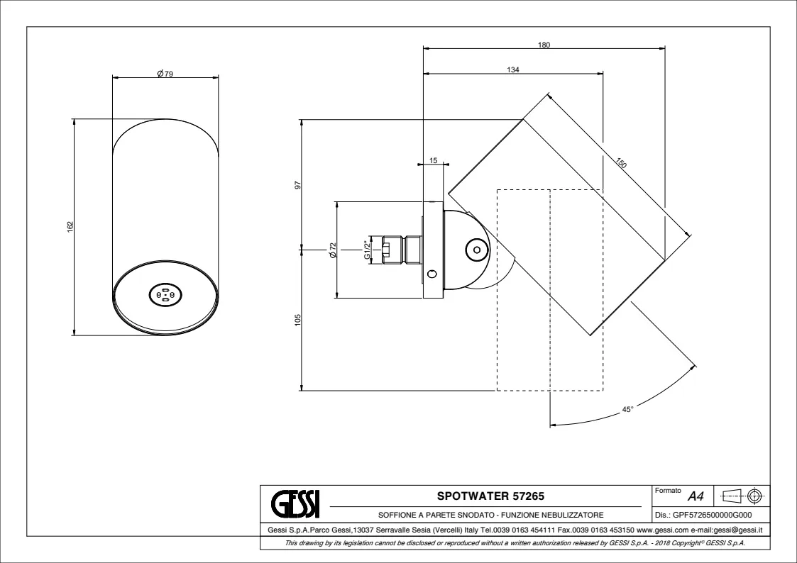 Верхний душ Gessi Spotwater 57265.031 Chrome