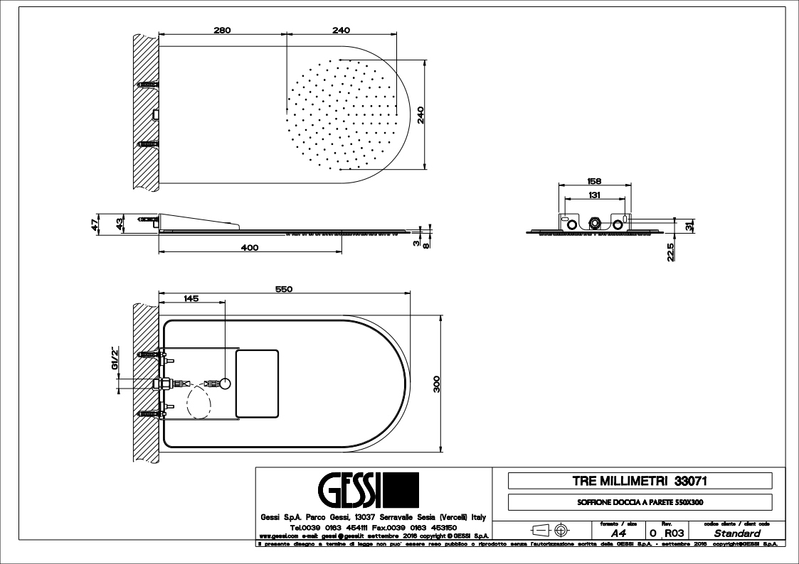 Верхний душ Gessi Tremillimetri 33071.238 Mirror Steel