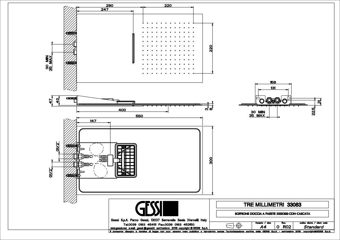 Верхний душ Gessi Tremillimetri 33083.707 Black Metal Brushed PVD