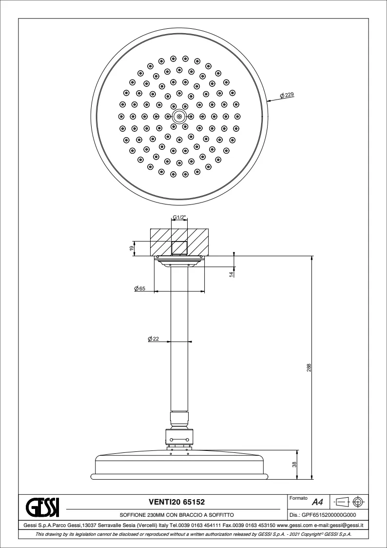 Верхний душ Gessi Venti20 65152.149 Finox Brushed Nickel