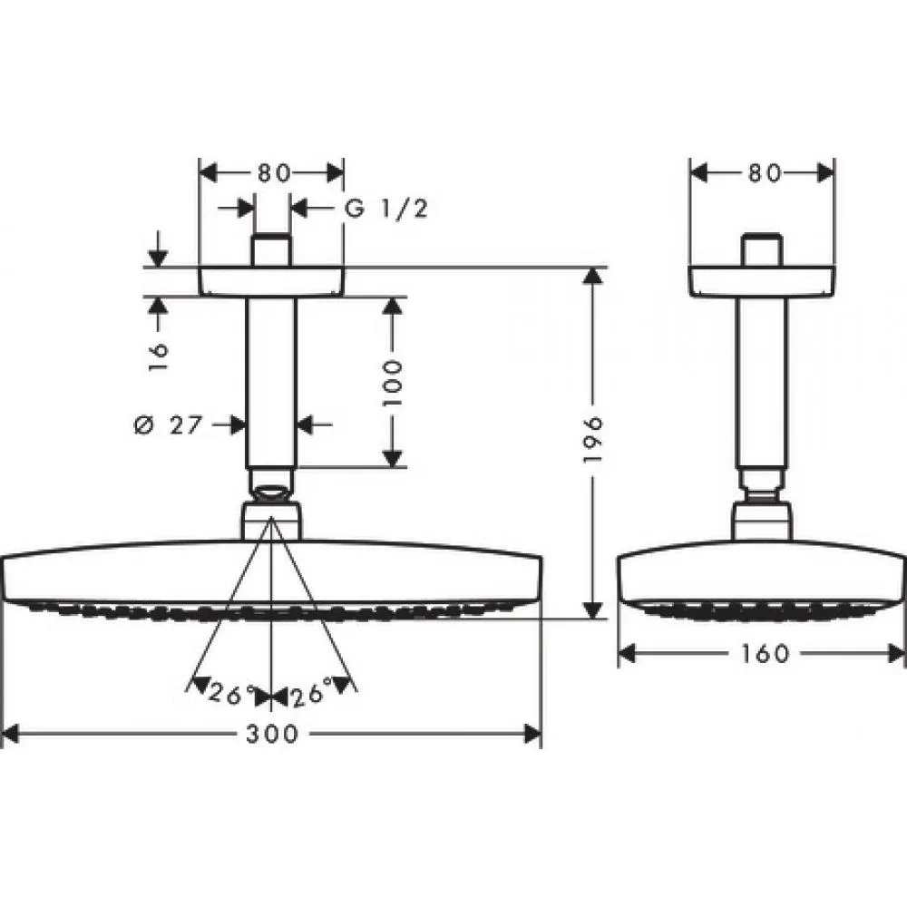 Hansgrohe 26 608 000 Raindance Select E Верхний душ 300х160 мм, 2 режима, потол. кроншт. 100 мм, ½, 9 л/ми