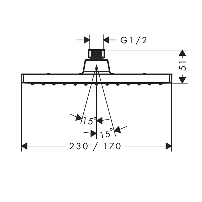 - размер душевого диска: 230 x 170 мм