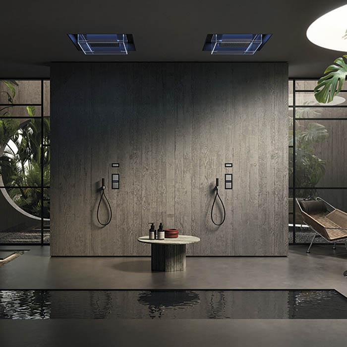 Верхний душ Newform Soffioni 400х400, квадрат, монтаж в потолок, 3 источника тропический душ, водопад, распылители, LED подсветка G1/2, хром 687.21.018