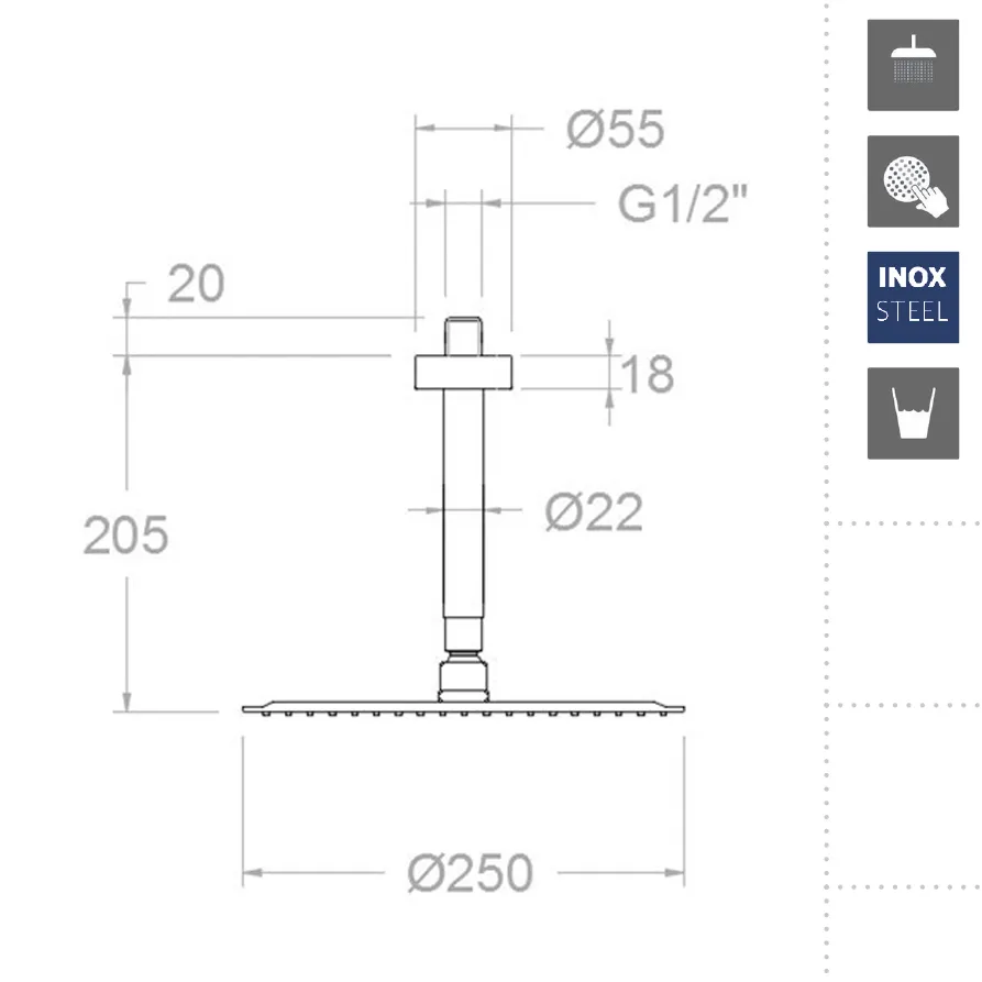 Верхний душ Ramonsoler потолочный круглый нержавеющая сталь BVRM250