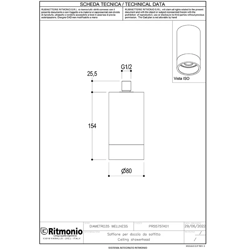 Верхний душ Ritmonio Diametro35 Wellness базовый корпус хром PR5575TA01CRL