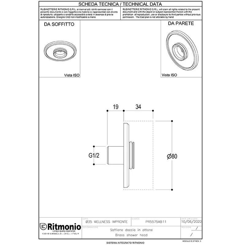 Верхний душ Ritmonio Diametro35 Wellness Impronte форсунка базовый корпус никель PR5575AB11NI