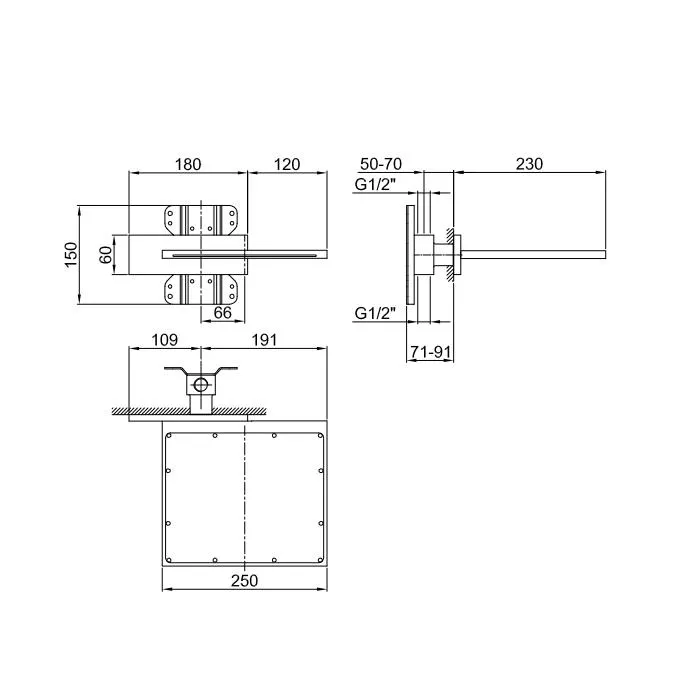 Верхний душ с функцией водопада Fantini Milano нерж. сталь, матовая натуральная сталь 86 93 8043B