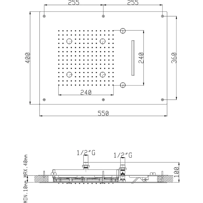 Встраеваемый верхний душ Cisal Zen Shower 55х40 см,3 типа струи,хромотерапия,выключатель,трансформатор, полированная нержавеющая сталь ZS027070D2