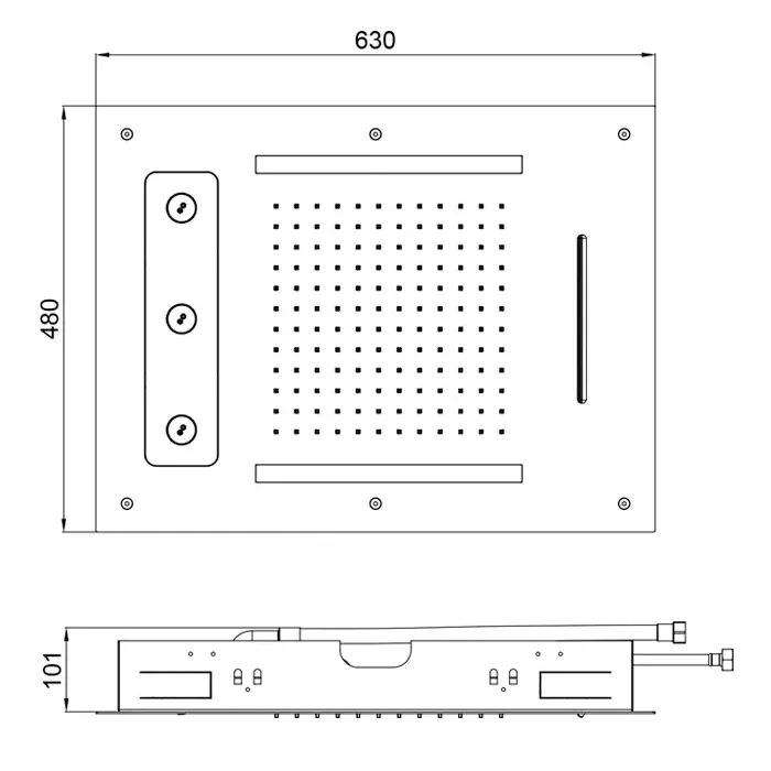 Встраиваемый верхний душ Almar 48х63, 3 типа струи, хромотерапия, black absolute brushed pvd E044190.AB
