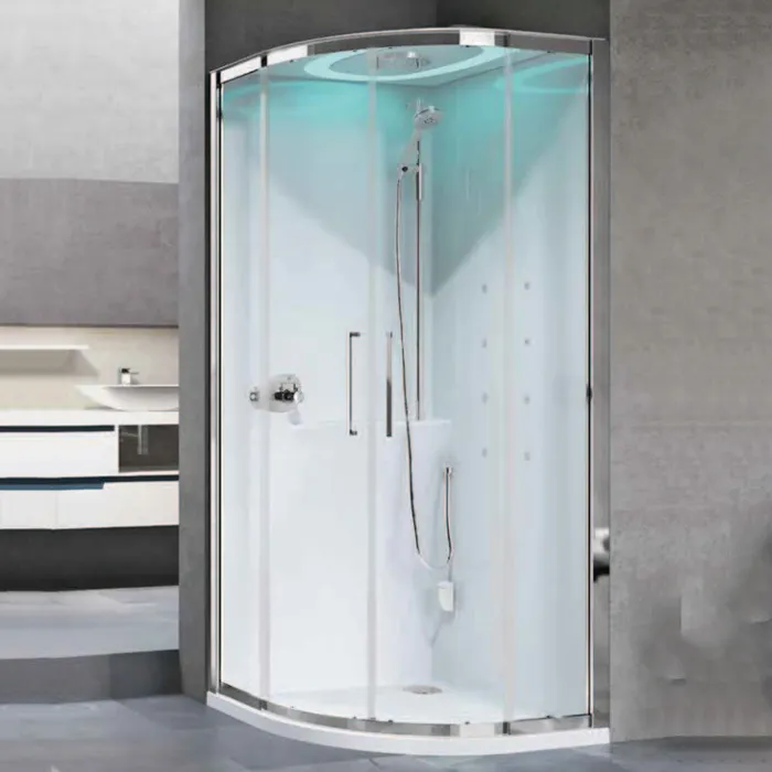 Душевая кабина Novellini Eon R 900х900х2210, смесит термостатич, гидромассаж, верхний душ, подсв, стенки белые глянцевые, фурн хром, стекло прозр, EONR99T1F-1AK