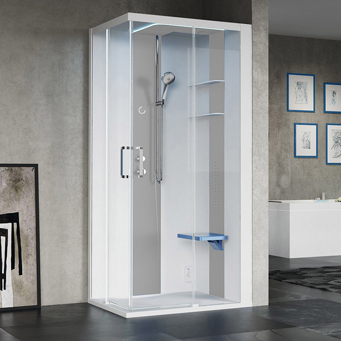 Душевая кабина Novellini Skill A 1000х800х2175, правая, Essential, поддон 125, смес термос, стенки бел глянц, вставки Light grey, стекло прозр, SKIA109DT1F-1AN1