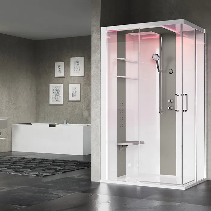 Душевая кабина Novellini Skill A 1200х900х2175, левая, Essential, поддон 125, смес термос, стенки бел глянц, вставки Light grey, стекло прозр, SKIA299ST1F-1AN1