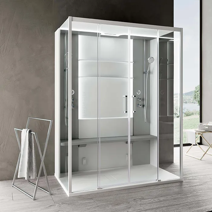 Душевая кабина Novellini Skill Dual 1600х970х2190, пристенная, правая, поддон 125, стенка белая глянцевая, вставки Light grey, стекло прозрачн, SKI2A169DT5-1AN1