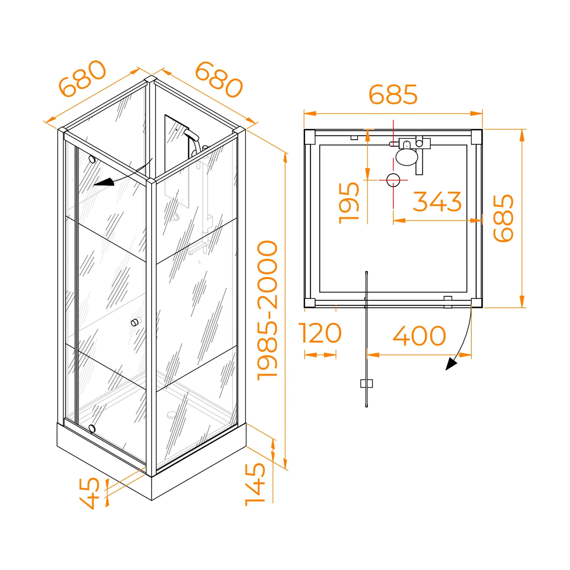 Стенки кабины выполнены из безопасного закаленного стекла толщиной 5 мм и обрамлены широкой матовой полосой по запатентованной технологии Frost Line - это стильное и практичное решение.