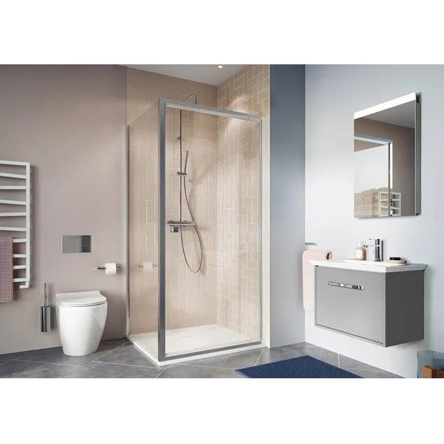 Двери Infold шириной 900 мм, отлично сочетаются с боковым экраном 900 мм и позволяют в любом месте ванной комнаты создать настоящее произведение искусства. Данный набор имеет ряд технологических решений, которые очень позитивно влияют на процесс эксплуатации данной конструкции: