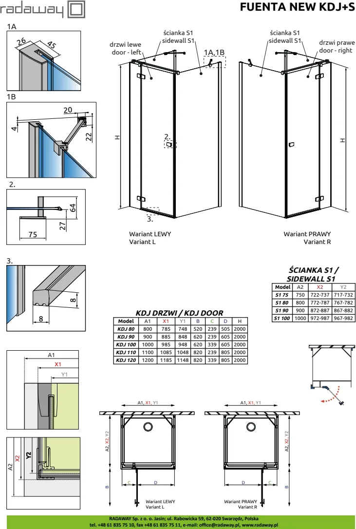 Fuenta New KDJ+S — квадратная или прямоугольная, пристенная душевая кабина с одной распашной дверью — вход спереди.