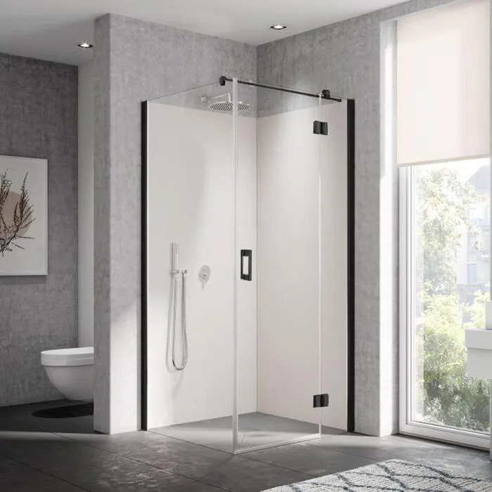 Боковая стенка Kermi Liga 860-885х2000 мм., фурнитура черный матовый, стекло прозрачное с kermiclean, продается только с дверью li sn.090203pk, LI TWP 09020 3PK