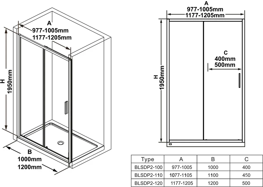 BLSDP2-110 блестящий+Transparent, душевая дверь