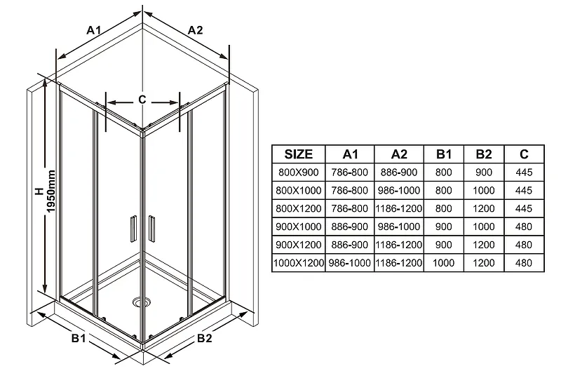 BLSRV2K-90 блестящий+Transparent, дверь для комбинации с дверью