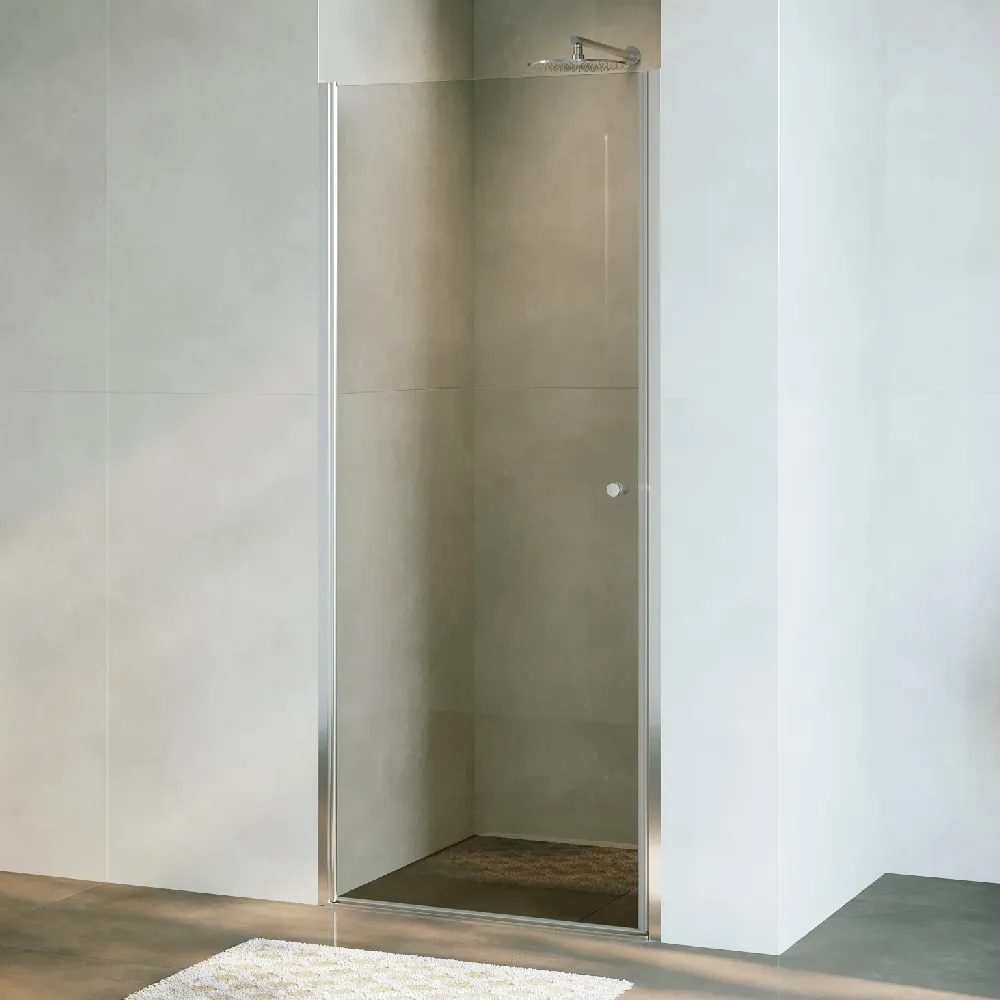 Профиль двери выполнен в стильном хромовом цвете, что придает ему элегантный и современный внешний вид. Конструкция дверей распашные, что дает возможность эффективно использовать пространство ванной комнаты. Двери оборудованы регулируемым профилем, что позволяет настроить двери под размеры вашей ванной комнаты.