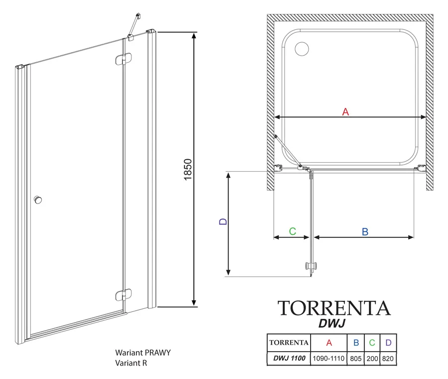 Душевая дверь Radaway Torrenta DWJ 110 R 32040-01-05N