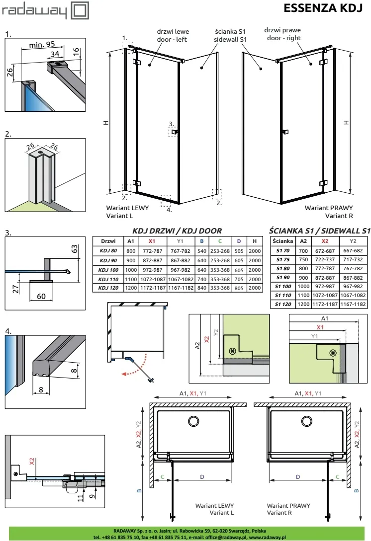 Душевая дверь Radaway Essenza KDJ 90 Left 1385044-01-01L