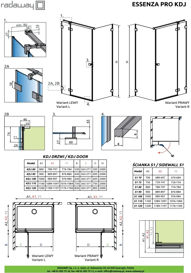 Душевая дверь Radaway Essenza Pro KDJ 90R, 90 х 200 см, с неподвижной частью, стекло прозрачное, профиль хром, правая, 10097090-01-01R