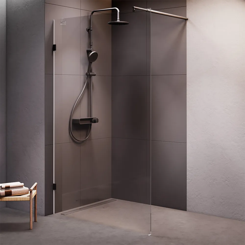 Минималистичная и современная душевая перегородка Walk In не только снизит визуальный шум в ванной но и благодаря оптимальным размерам впишется в любую ванную комнату.