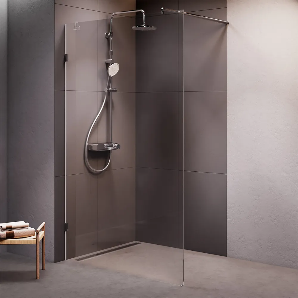 Минималистичная и современная душевая перегородка Walk In не только снизит визуальный шум в ванной но и благодаря оптимальным размерам впишется в любую ванную комнату.