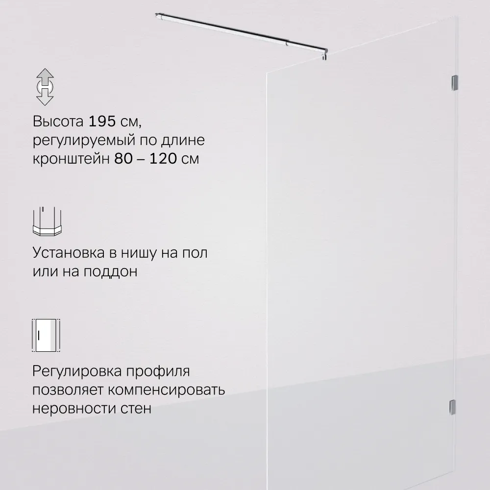 Минималистичная и современная душевая перегородка Walk In не только снизит визуальный шум в ванной но и благодаря оптимальным размерам впишется в любую ванную комнату.