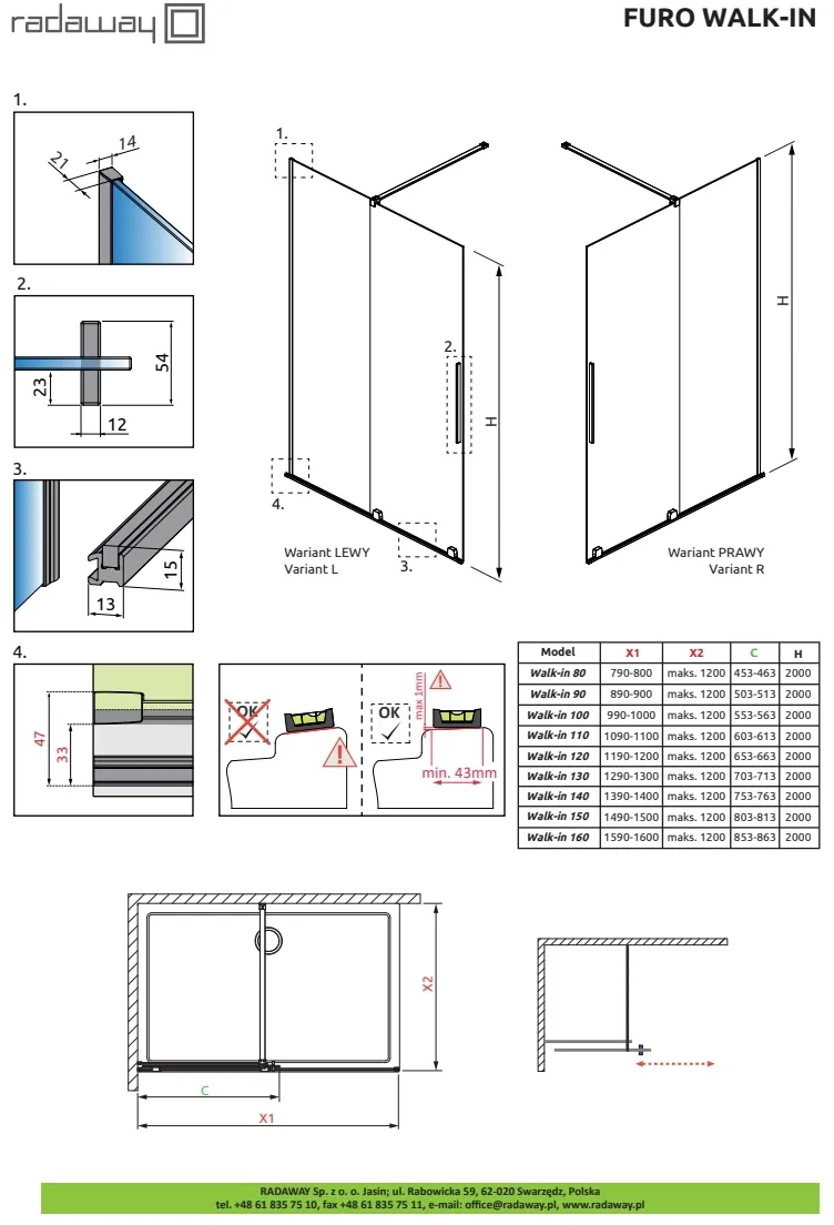 Душевая дверь Radaway Furo Black Walk-in 438 Right 10106438-54-01R