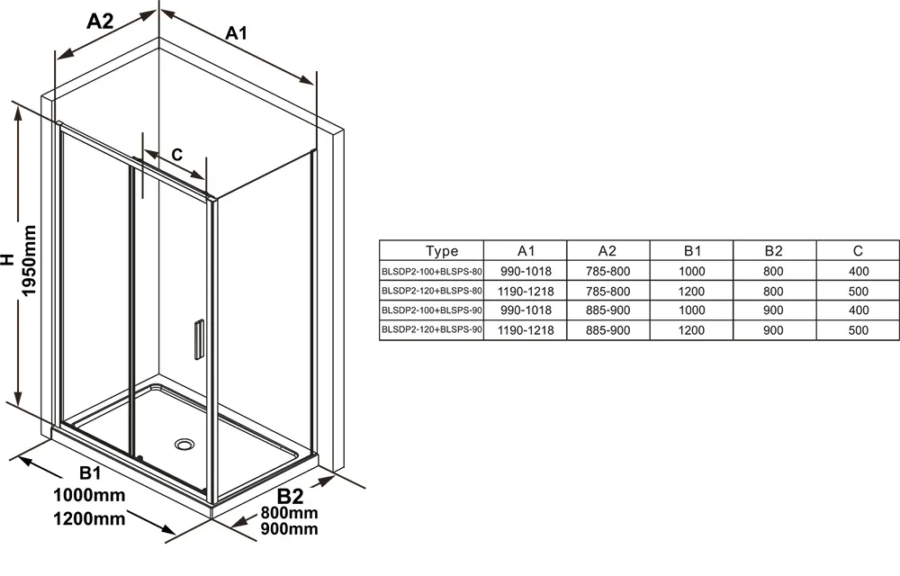 BLSPS-90 черный+Transparent, неподвижная стенка