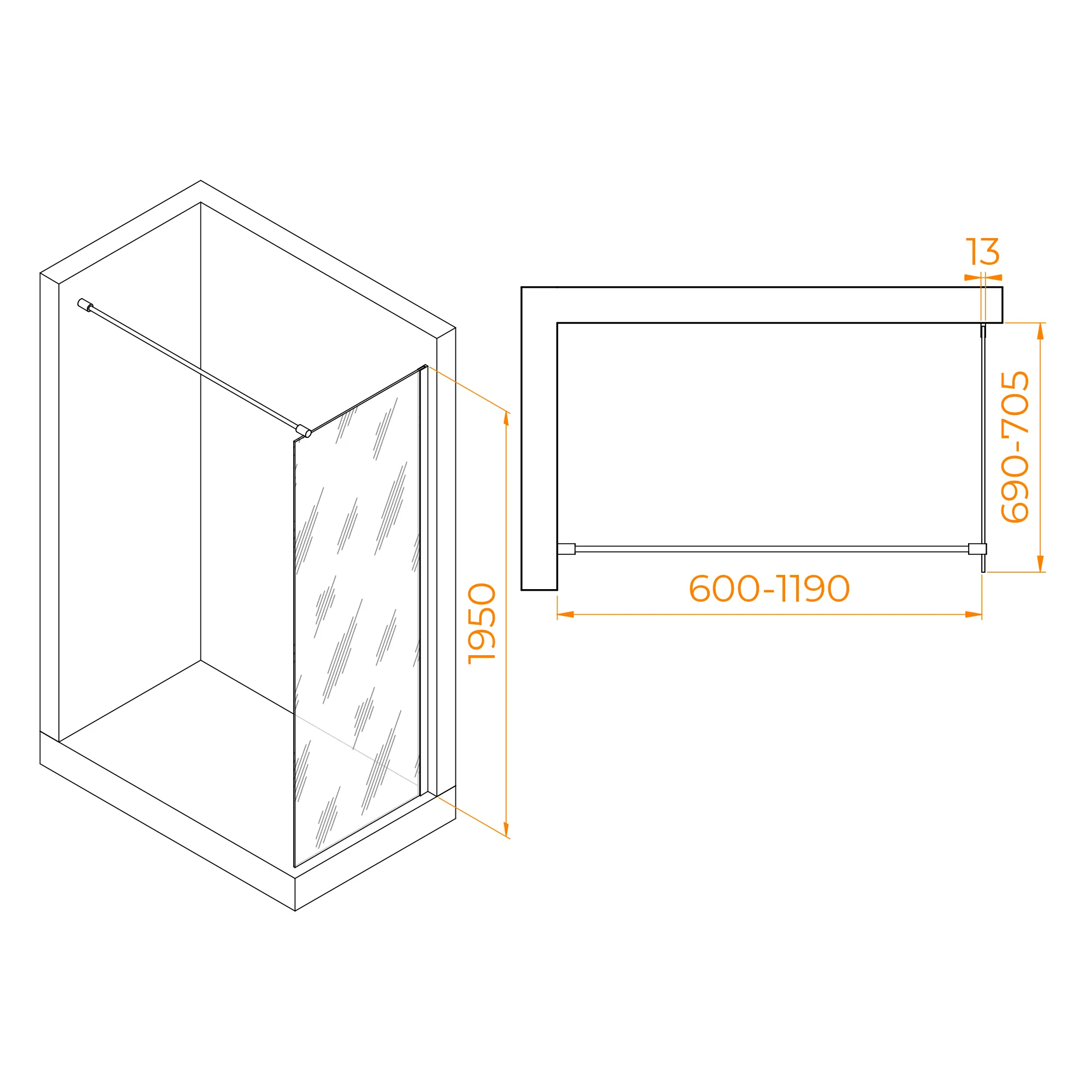Высота перегородки для душа RGW WA-010 составляет 195 см, что обеспечивает комфортное использование для большинства людей и позволяет избежать протекания воды через край перегородки.